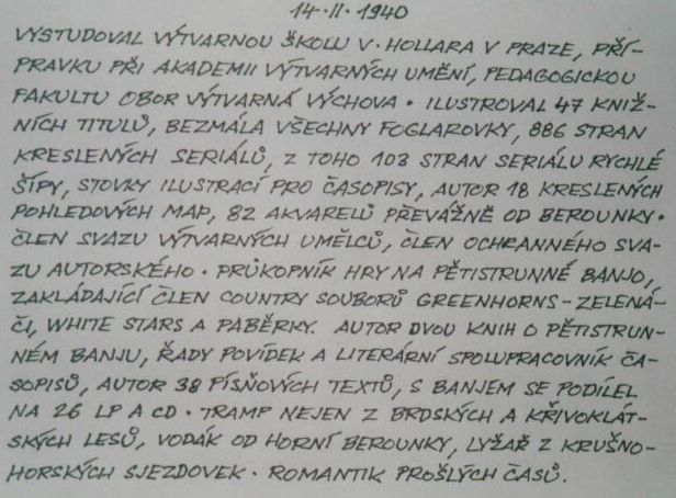 Když odloží tužku a štětec, obdobné příběhy hraje na bendžo.