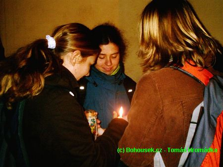 Večer světel je plnoletý[ Autor: Tomáš Hromádka - Krizmen | zařazeno: 17. 12. 2006 | přečteno 19162 ] Aktualizováno. Pražskému Večeru světel bylo letos osmnáct let. Vstup do své plnoletosti oslavil tradičně 17. prosince v 17 hodin u zadního vchodu kostela sv. Haštala na Starém Městě. Dalo si zde dostaveníčko více než třicet zájemců z celých Čech (Praha, Mělník, Mladá Boleslav, Rumburk, Brandýs nad Labem, Příbram, Kostelec nad Černými Lesy aj.), aby si připomněli svého oblíbeného spisovatele Jaroslava Foglara a seriál Rychlé šípy, který právě před 68 lety začal vycházet na zadní stránce Mladého hlasatele. Setkání zahájil svým úvodním slovem o historii a současnosti Večera světel 1. místopředseda Sdružení přátel Jaroslava Foglara Milan Lebeda – Alpín. Letos se pražský Večer světel konal na podporu oficiálního pojmenování nedaleké uličky „Ve Stínadlech“ – k dispozici byly podpisové archy petice a svojí účastí na Večeru světel tuto iniciativu podpořil Ing. Filip Dvořák – radní Městské části Praha 1. Ještě před tradičním společným zapalováním svíček a zvolání vontských formulí se účastníci mohli dozvědět o připravovaných akcích pro příští jubilejní rok a Petr Molka – Best prozradil vyvoleným s mincí další z foglarovských tajemství. Pak už se na mnoha místech pražských Stínadel objevila mihotavá světélka a mladší ročníky se rozeběhly po okolních křivolakých uličkách, aby za svitu pouličních luceren hledali místa s tajemstvím. Hru připravila Adéla Vožechová – Bublina. Na plácku před kostelem mezitím probíhal rozdávání řady příležitostných materiálů, z nichž je nutno vyzvednout krásný barevný pamětní list, který nakreslil Roman Liščák. Tomáš Hromádka – Krizmen pozval zájemce na Žaludový dort, který připravil podle návodu z Kroniky Ztracené stopy, Vlastislav Toman – Hadži informoval o připravovaném filmu na motivy vlastních příběhů o Kruanovi, Jan Trojan představil vyrobeného dřevěného bobra v životní velikosti (autorem je Jaroslav Urban z TO Svobodní tuláci), v permanenci bylo razítko, ale i propiska, kterou se zájemci podepisovali do nové kroniky Večerů světel. A na závěr nastal čas, kdy se vydali za Rychlými šípy (soutěž Hledáme Rychlé šípy byla při Večeru světel uzavřena, Rychlé šípy našli pouze dvě pátračské skupiny). Povinnou zastávku přitom udělali v uličce „Ve Stínadlech“, kde byly opět vzpomenuty okolnosti spojené s pojmenováním a cedulobitím. Cesta potom vedla starým Františkem Kozím pláckem přes Vracenky s vysokými chodníky do židovského města, až do Břehové ulice 43/3, kde na balkoně velvyslanectví státu Mauritius se do ulice usmívaly Rychlé šípy. Jak příhodně napsal jeden z úspěšných pátračů Filip Janov (vlče 106. smečky Ginkgo, skautské středisko Atahokan - bratří Mašínů, Praha): "Kluci asi šli za konzulem, aby mu sdělili, že jeden kousek vzácné poštovní známky Modrý Mauritius omylem spálil Maximilián Dráp!"