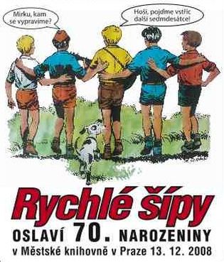 Rychlé šípy slaví sedmdesátiny! Přesto vůbec nestárnou. I po sedmi desetiletích od chvíle, kdy 17. prosince 1938 vyšel v melantrišském časopise pro chlapce a děvčata Mladý hlasatel úvodní příběh (Černí jezdci řádí) dlouhé komiksové řady o legendárním klubu, jsou Mirek Dušín a spol. stále činorodými a podnikavými chlapci, kteří se na nějaký ten křížek neohlížejí…