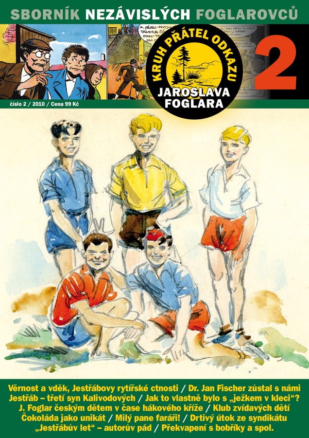 Vychází druhý Sborník nezávislých foglarovců[ Autor: Jiří Stegbauer - Jura | zařazeno: 9. 6. 2010 | přečteno 13585 ] Nakladatelství Ostrov připravilo ve spolupráci s Kruhem přátel odkazu Jaroslava Foglara v malém nákladu druhý Sborník nezávislých foglarovců, jehož premiéru uskuteční foglarovský badatel Luboš Trkovský na tradičním setkání ve Sluneční zátoce u Ledče nad Sázavou 19. 6. 2010. V jeho obsahu je řada nových, dosud neznámých nebo pozoruhodně doplněných objevů ze života a díla Jaroslava Foglara. Publikace mj. připomíná životní jubilea obou kreslířů Rychlých šípů, přičemž k připomínce dr. Jana Fischera je na obálce otištěna také nově objevená, dosud neznámá kresba Rychlých šípů z roku 1950! Z obsahu: Věrnost a vděk, Jestřábovy rytířské ctnosti Dr. Jan Fischer zůstal s námi Jestřáb - třetí syn manželů Kalivodových Jak to vlastně bylo s "ježkem v kleci"? Klub zvídavých dětí Čokoláda z Hlasatele jako unikát Milý pane faráři! Drtivý útok ze syndikátu Překvapení s bobříky a spol. Sborník má 32 stran formátu A4 tištěných tentokrát čtyřbarevně na silnějším křídovém papíru a jeho cena je 99 Kč.