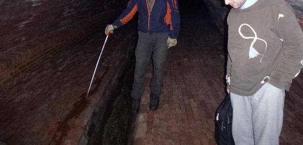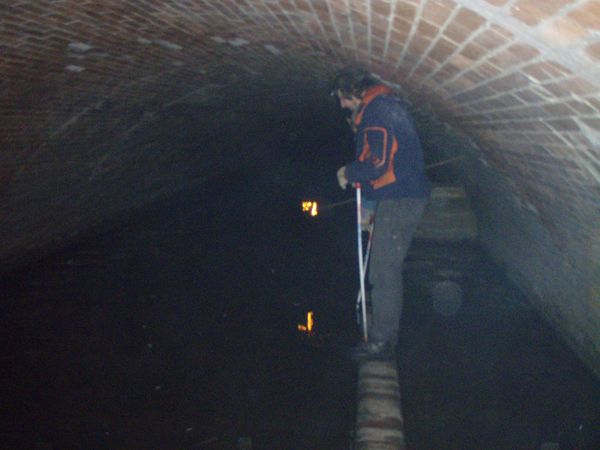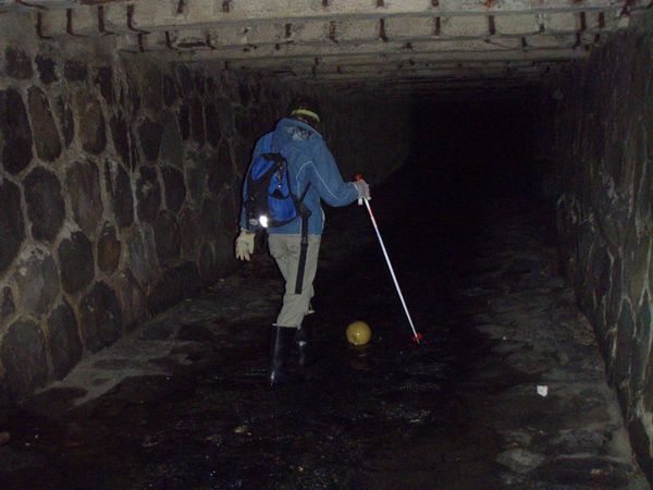 Muž v podzemí s počítačem přes ramenoPozvánku na akci Pražské pobočky SPJF jsme pověsili na Bohousek.cz a poslali také několika vytypovaným jedincům email. Zájemci se měli přihlásit do neděle 2.2. V tento den ve 2 hodiny před 15 roky jsme se loučili ve strašnickém krematoriu s Jaroslavem Foglarem a tato výprava do podzemí byla naší vzpomínkou na Jestřába. O půlnoci 2. února se ve všech emailových zvadlech proměnila pozvánka v něco jiného a ztratily se tak potřebné indicie k místu a času srazu. Jediné zvadlo se neproměnilo - to bylo to pro kamaráda vytištěné a v roličce uschované na domluveném místě v trubce zábradlí jisté ulice. Kamarád dorazil, dokonce jako jediný s přilbou na hlavě. Takováto tajná výprava musela setřást Bratrstvo Kočičí pracky a všechny plantážníky, kteří si nepamatují údaje ze zvadla a nejsou schopni si poskládat k sobě potřebné informace. To možná zkomplikovalo účast některých kamarádů, kteří tak nedorazili. Z Brna ale za námi přijel Č., který zrovna tento den dělal státnice a chtěl si výpravou do podzemí vyčistit hlavu. Zkouška se však protáhla a on přijel až pozdějším vlakem a v tmavém obleku. U vlezu do podzemí jsem mu tedy nechal staré kalhoty, mikinu a povlak na oblek s ramínkem. Č. to našel, převlékl se a vyrazil za námi. Jenže myslel, že už prozkoumáváme spodní část podzemí, ale my ještě byli někde proti proudu. Č. za námi vyrazil sám podzemní Prahou s notebookem přes rameno a vzdaloval se naší partě. Pří lezení k poklopům ve vozovce nebo chodníku jsem se mu přes kanálovou mřížku snažil z mobilu odeslat SMS, aby věděl, že jsme mu teprve v patách a nemá tak spěchat. Byli jsme v podzemí celkem asi 3,5 hodiny a SMS Č. zastihla až na povrchu. Všichni jsme se vrátili v pořádku. Dokonce dokud byly nabité baterky a suchý kameraman, točil se v podzemí i dokumentární film o naší výpravě a o Stínadlech. Cesta podzemní chodbou Pokusím se ještě popsat podzemí. Dolní celistvě zakrytá část je přes 4 km dlouhá a s ohledem na typ zakrytí lze zakrytí rozdělit na tři úseky. V dolním úseku zakryté části, od vyústění do Vltavy po přeliv za lapákem písku asi někde pod Malostranským hřbitovem, necelých 1,5 km, je zaklenuté koryto vyzděno z kanalizačních cihel. Od Vltavy zhruba 500 m je koryto ve dně široké 5 m a přibližně 2,5 m vysoké, s nízkou lavičkou (neznámého významu) při levé straně a s nízkou dělící zídkou v pravé polovině koryta. Po ní se dá postupovat a nejít vodou. Pak se profil snižuje na asi 2,2 x 4,5 m ve dně s půlkruhovou kynetou 0,30 m hlubokou, 0,60 m širokou. Následuje lapák písku u hřbitovního kostela, který je 16 m dlouhý a asi 7 m široký. Střední úsek zakryté části začíná stupněm na konci lapáku u kostela Nejsvětější Trojice a končí lapákem na Košířském náměstí asi 3,5 km od ústí. Koryto průřezu převýšeného lichoběžníku je opevněné ve dně dlažbou do betonu, boky tvoří betonové zdi obložené na líci kyklopským zdivem. Koryto je ve dně široké 2,5 až 3,5 m. Svislé betonové zdi jsou překlenuty železobetonovou deskou o rozpětí 3 až 5 m vyztuženou železobetonovými trámy. Výška průtočného profilu je zde od 2 do 2,5 m. Koryto zde má čtyři stupně, které jsou asi 1,5 km od ústí, pak o 200 m dále a další asi za 1 km a poslední po 300 m. Horní část zakrytého úseku potoka začíná za lapákem písku asi někde pod Košířským náměstím 3,5 km od Vltavy a směřuje k vyústění ze zakryté části. Je zde zaklenutý profil se šířkou ve dně od 2,8 až 3,2 m a výškou 1,7 až 1,9 m. Strop je vyztužen železobetonovými trámy. Na trase nejsou ve dně žádné stupně. Vtok do zakrytého úseku Motolského potoka je opatřen hrubými česlemi z ocelových profilů se zamčenými dvířky. Do zakrytého úseku Motolského potoka jsou zaústěny dešťové výpusti. Na trase jsou dva vstupy do podzemí opatřené schodišti. Oba jsou zamčené a ústí v okolí kostelů, které podzemí spojuje. Na trase je zaústěno do Motolského potoka také mnoho uličních vpustí, kde hlasitě šplouchá voda. Některé vpustě jsme navštívili. Musím se přiznat, že se nám nepodařilo identifikovat, kudy vede trasa potoka na povrchu. Určité názory a poznatky máme, ale tok se lehce klikatí v obloucích o velkých poloměrech a nejasná je nám trasa právě kolem křižovatky Anděl a obchodního centra Nový Smíchov. Ostrou pravoúhlou zatáčku pod KFC vyvrací právě ty velké poloměry zatáček, ale podzemním parkovištěm jsme také neprolézali. Zakutálený míček jsme ale stejně jako Rychlé šípy našli… Horní část potoka, skoro 6 km dlouhou, si necháme na někdy jindy. I tak jsme si podzemí tentokrát užili víc, než jsme předpokládali. Výprava sloužila jako náborová akce do naší pobočky SPJF. Nechcete jít příště někam s námi? Menhart@Stinadla.cz