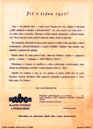 Ábíčko se do důchodu nechystá. 60 let časopisu[ Autor: Vlastislav Toman | zařazeno: 20. 1. 2017 | přečteno 12689 ] Pokud patříte ke čtenářům-pamětníkům a časopis ABC pravidelně nesledujete, pak vám možná uniklo, že má v lednu významné jubileum! Ano, právě před šedesáti roky v lednu 1957 (podle tiráže 20. ledna – pozn. red.) vyšlo první číslo nového časopisu ABC mladých techniků a přírodovědců. Žádná velká reklama nebo propagace se tenkrát nekonala. Jen pár letáčků a oznámení na školy. Sotvakdo si dovedl představit, jak bude takový časopis vypadat. Komu bude určen, napovídal už sám předlouhý název. Klukům a děvčatům, které zajímá příroda a technika nebo i věda. Že z toho nakonec zůstane jen to ABC, nebo kamarádské Ábíčko či (moravské a slovenské) Ábécečko, bylo nasnadě. A tak se také stalo. Už první číslo ABC zmizelo z prodejen tisku během pár dnů, v Praze dokonce za několik hodin! Start nového měsíčníku se tedy povedl, přesto se tehdy nedalo předpokládat, že se časopis dožije šedesátky a stane se druhým českým nejstarším časopisem pro děti. (Tím prvním je totiž Mateřídouška, jejíž první číslo vyšlo už v roce 1945 – pozn. autora) Ábíčko za ta léta prošlo mnoha změnami. Stručně připomenuto – nejprve zesílilo, když dostalo obálku s přílohami a vystřihovacími modely i pomůckami, pak zhublo, aby se mohlo stát čtrnáctideníkem. I ten však zakrátko nabral stránky a tak se zrodil nejsilnější časopis pro kluky a děvčata o 40 stranách. Navíc se do časopisu vkládaly nejrůznější přílohy, tzv. déčka, obtisky, nášivky, semena květin i jehličnanů, ba i tužky, klíče na tuby a dokonce měkké gramofonové desky. To byla sedmdesátá léta, snad nejbohatší na změny. Od padesáti tisícového nákladu, se kterým ábíčko startovalo v roce 1957, se náklad neustále zvyšoval a v osmdesátých letech dosáhl přes 300 000 výtisků. Časopis ABC však sehrál svoji roli i při změnách, ke kterým postupně docházelo v tehdejší Pionýrské organizaci ČSM. Od roku 1960 totiž organizoval pionýrské zájmové kluby – raketové posádky, hlídky přírody, dívčí kluby a další. Rozvíjela se tak pionýrská činnost v místě bydliště, i když i na školách a v jiných zařízeních. Až v sedmdesátých letech při vzniku Pionýrské organizace SSM byly kluby postupně omezovány, zato však některé poznatky z jejich organizování a činnosti byly včleněny do Výchovného systému PO SSM. Byly tu však i jiné aktivity, které časopis vytvořil nebo pomohl při jejich rozvoji. Ať už to byly závody minikár, turistické srazy čtenářů a klubů, návody a náměty pro zájmovou technickou a přírodovědnou činnost, podpora stanic mladých techniků a přírodovědců při průmyslových a zemědělských závodech, nebo – dodnes trvající a rozvíjející se – papírové modelářství! Na přelomu tisíciletí se poněkud pozměnil název časopisu na ABC, časopis generace 21. století. Jak každý vidí, to Ábíčko však zůstalo a přináší klukům a děvčatům, tak jako vždy, pohledy na nové trendy ve vědě, technice a přírodě. Má své webové i facebookové stránky, nabízí e-stránky s videozáznamy, aktualitami i archivem. Zůstaly však i tradiční papírové modely a komiksy, které k Ábíčku neoddělitelně patří už od jeho první čísla. Ano, vy, pamětníci, si zcela jistě povzdechnete: „Ale už to není časopis jako kdysi!“ Máte pravdu, vždyť ani ta dnešní doba není jako (kdysi) ta naše! Přesto – na zdraví jubilantovi! Vlastislav Toman, pamětník, (spoluzakladatel a šéfredaktor ABC v letech 1959-92)