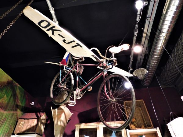 V obchůdku divadla je zavěšeno létací kolo Jana Tleskače