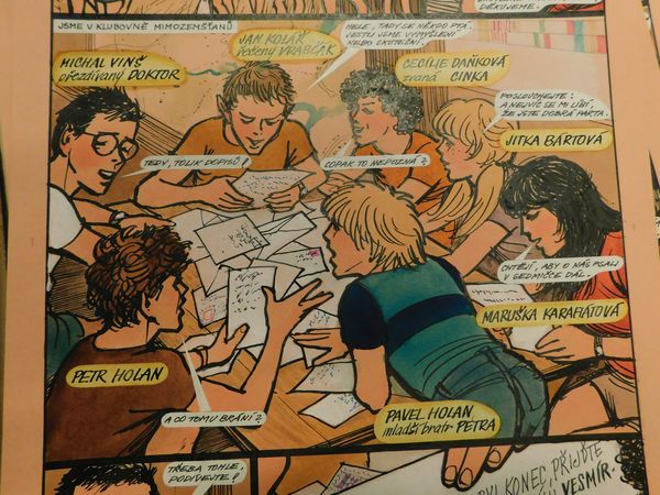 Kreslený seriál z druhé poloviny osmdesátých let Mimozemšťané scénáristy Jiljího Záruby a kreslíře Jiřího Petráčka právě vyšel v souborném vydání v Nakladatelství Václav Vávra. Zájemci o podpis a věnování do knihy od kreslíře Jiřího Petráčka mohou využít jeho autogramiády coby držitele ocenění „Síň slávy českého komiksu“ v sobotu 11. 5. od 14 do 15 hodin na stánku L 113 Nakladatelství Josef Vybíral v levém křídle paláce na 25. mezinárodním knižním veletrhu a literárním festivalu Svět knihy 2019 konaném od 9. do 12. května na Výstavišti v pražských Holešovicích. Kniha je na stánku v prodeji. Mimozemšťané do této knihy nepřistáli z neznámé daleké planety. Jsou to úplně normální holky a kluci z malé vesničky Březinka, mají rádi přírodu, dobrodružství, hry, táboření a dohromady tvoří pionýrskou družinu. Hezká a obětavá Maruška, klukovská Cinka, fintivá Jitka, nadaný Doktor, chytrý a mrštný Vrabčák a bráchové Petr a Pavel dojíždějí na základní školu v nedalekém Městečku, kde také funguje oddíl Vesmír, jehož jsou Mimozemšťané součástí. Ve škole i po ní prožívá sedmička kamarádů první lásky, střety se svými vrstevníky i s dospělými, vedle vítězství i prohry, neplánované zkoušky přátelství... S kresleným seriálem Mimozemšťané se čtenáři poprvé setkali na poslední straně dětského týdeníku Sedmička pionýrů v září roku 1984 a vycházel zde nepřetržitě až do srpna 1988 (číslo 1 ročníku 18 - číslo 52 ročníku 21). Samostatný pětistránkový příběh Mimozemšťané po roce byl ještě otištěn v Magazínu Sedmičky pionýrů v roce 1989. Tvůrci rozsáhlého kresleného seriálu jsou autor námětu a scénáře Jiljí Záruba a kreslíř a ilustrátor Jiří Petráček. Jiljí Záruba jako začínající redaktor nastoupil do Sedmičky pionýrů v roce 1983, Mimozemšťané byli jeho první kreslený seriál, zatímco Jiří Petráček - Oskar byl v té době již zkušený a ostřílený autor. Oba úspěšně spolupracující tvůrce lze osobně spatřit v příběhu z Vrabčákova snu, když za sebou mají Mimozemšťané první stovku pokračování. Časopis Sedmička pionýrů vydávaný českou ústřední radou Pionýrské organizace SSM v nakladatelství Mladá fronta vedle zábavného či poučného čtení přirozeně přinášel i témata daná dobou a pokyny "shora" a vyhnout se jim občas nemohli ani Mimozemšťané. Kreslený seriál jako celek však má přínos v tom, že objevil pro tento žánr opomíjené prostředí vesnice respektive dětských každodenních neprázdninových dobrodružství v ní - scénáristovi Jiljímu Zárubovi totiž vesnický život nebyl z vlastního dětství neznámý. Rovněž množství zápletek o vztazích mezi aktéry příběhů dělá seriál životnější a vrstevnatější. Jestliže seriál samotný začal vycházet na začátku školního roku (a tedy i na začátku nového ročníku časopisu) 1984, s družinou Mimozemšťanů se ale čtenáři Sedmičky pionýrů mohli seznámit už v předchozím ročníku v jiném kresleném seriálu Třináctka ze Staré čtvrti scénáristy Pavla Toufara a kreslíře Jiřího Petráčka: Mimozemšťané prožijí díky dílčímu scénáristickému vstupu Jiljího Záruby do seriálu na šesti stránkách společné dobrodružství s městským turistickým oddílem Třináctka, pro který připraví terénní hru. V roce 1990 vydalo Nakladatelství Mladá fronta v chystané edici Obrázkové seriály Mladé fronty prvních 51 příběhů Mimozemšťanů pod stejnojmenným názvem. Další příběhy zde již nevyšly. Tato kniha je tak prvním souborným vydáním kresleného seriálu Mimozemšťané. Pokračování číslo 52 (dle číslování v tomto souborném vydání) bylo původně otištěno před pokračováním číslo 42. Několik příběhů má odlišný formát. Je to dáno tím, že v dvojčíslech časopisu vycházela dvě pokračování najednou, avšak pouze s jedním záhlavím – titulkem (titulek uváděl jinak každé samostatné pokračování na zadní straně, někdy i s krátkým shrnutím děje nebo úvodu do příběhu), což umožnilo jiné rozvržení a také větší počet okének. Jiný formát mají také pokračování z Magazínu Sedmičky pionýrů. Prvních 51 pokračování a pokračování číslo 105 není reprodukováno přímo z originálů, neboť ty se nedochovaly. Nakladatelství se tedy omlouvá za o něco horší kvalitu výsledného tisku těchto stran a děkuje za pochopení. Je začátek září 1984 a Mimozemšťanům kvůli protažené oddílové schůzce před nosem ujel vlak domů - vydejme se tedy s Maruškou, Cinkou, Jitkou, Doktorem, Vrabčákem, Petrem a Pavlem na jejich první dobrodružství... Plnobarevnou knihu Mimozemšťané vydalo Nakladatelství Václav Vávra v květnu 2019. Má formát A4, rozsah 216 stran, je doplněna ediční poznámkou. Doporučená prodejní cena je 599 Kč, přímo u nakladatele (www.intercrosse.eu ) je k dostání za 549 Kč, stejně tak na stánku Nakladatelství Josef Vybíral na Světě knihy 2019.