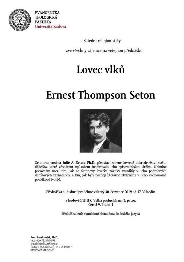 Katedra religionistiky Evangelické teologické fakulty Univerzity Karlovy zve všechny zájemce na veřejnou přednášku Lovec vlků Ernest Thompson Seton.