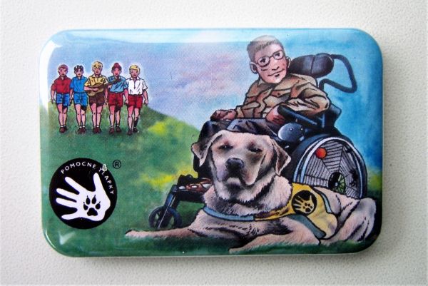 A ještě jednou Jirka Filípek: pro ty, kteří by chtěli podpořit Pomocné tlapky a přispět na výcvik asistenčních psů, je tu další magnetka, na které spěchají Pomocným tlapkám přispět samy Rychlé šípy. Tuto magnetku je možno získat za příspěvek 33 korun a vyšší. Všechny výše uvedené magnetky pocházejí z produkce Slávka Janova a můžete si je u něho zamluvit buďto e-mailem slavomil.janov@email.cz, nebo telefonicky: 602686725. K dispozici budou samozřejmě také na nejrůznějších foglarovských akcích.