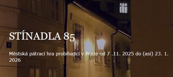 Pátrání Stínadla 85 probíhá od 7. listopadu 2025 v Uličkách Starého Města pražského. Pátrači ve svém PRVNÍM PÁTRÁNÍ "něco" hledali podle mapy na 7 místech. Postupně skládali větu, která jim prozradila PRVNÍ STÍNADELSKÉ TAJEMSTVÍ.Hráči v den zahájení 7. listopadu výsledek svého pátrání zapisovali na webu hry do příslušného okna, ale také to ústně oznámili v kostele sv. Anny (Pražské křižovatce) na akci 85 let Stínadel. Za to byli připuštěni k Tleskačovu kolu štěstí. Hráči, kteří se do pátrání zapojí až v následujících dnech, budou mít spojeno První pátrání s DRUHÝM PÁTRÁNÍM, které bude probíhat od 10. listopadu až do 17. prosince. Na to naváže TŘETÍ PÁTRÁNÍ, které potrvá až do 23. ledna. více... Beseda a křest knihy Jiřího Poláka To byl Václav Junek o akademickém malíři, který namaloval nejenom Slabikář, ale také Rychlé šípy, proběhne 11. 11.[ Autor: Milan Lebeda - Alpín | vydáno: 9. 11. 2025 | přečteno 1486 | přidat komentář ]
