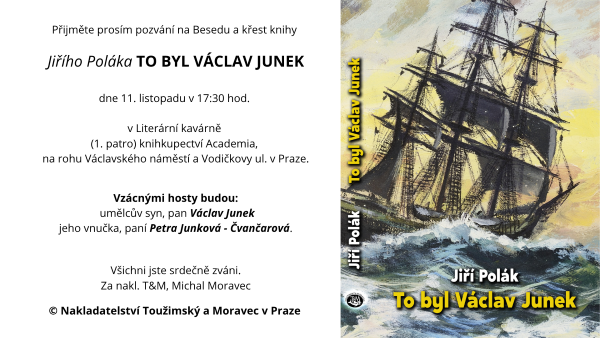 Z nakladatelství Toužimský & Moravec koncem října přišla na knihkupecké pulty první monografie malíře, kreslíře, ilustrátora a grafika Václava Junka (16. 8. 1913 – 29. 1. 1976), kterou napsal novinář a publicista a také foglarovec Jiří Polák a vycházející s podporou Junkovy rodiny.A právě syn Václava Junka Václav Junek a vnučka Petra Junková – Čvančarová budou 11. listopadu 2025 od 17.30 hodin hosty besedy a křtu nové publikace v Literární kavárně v prvním patře pražského knihkupectví Academia na rohu Václavského náměstí a Vodičkovy ulice. více... Letos tomu nebude jinak[ Autor: Aleš Deutsch | vydáno: 9. 11. 2025 | přečteno 1238 | přidat komentář ] Přivážeš stužku ke Stromu Jaroslava Foglara u pražské Viktorie Žižkov na Seifertově ulici také Ty?