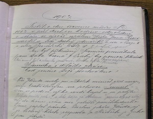 Šestého dne července měsíce LP 1907 v půl druhou hodinu odpolední v sobotu ve výročí upálení Mistra Jana Husi narodil se náš druhý jedináček a sice v Praze II v ulici Benátecké číslo 3.Den byl překrásný a Mamičce pomáhala paní Bába Černá z Prahy bez pomoci lékařské. Mamička a děťátko zdrávo, buď jméno Boží pochváleno! Náš Zděnda malej jen několik minut před narozením bratříčkovým na pohovce usnul! - - Ten se podiví, až ho uvidí hajat ve své postýlce. 6. července 1910 ve středu večer ¾ na 10 - na den upálení mistra Jana Husi. – Dnes je našemu Vávečkovi 3 roky a vinšoval jsem mu v postýlce, aby se mu stejně dobře tak vedlo aspoň ještě třicetkrát tak Dlouho. Zápisy do rodinné kroniky rodiny Foglarových provedl otec Jaroslava Foglara Jindřich Foglar; opravy respektive doplnění zápisu z roku 1907 ohledně průběhu porodu učinila maminka J. Foglara Marie Foglarová. více... Sluneční zátoka 2020 očima Roye z Mělníka[ Autor: Bohoušek | vydáno: 5. 7. 2020 | přečteno 10645 | přidat komentář ]