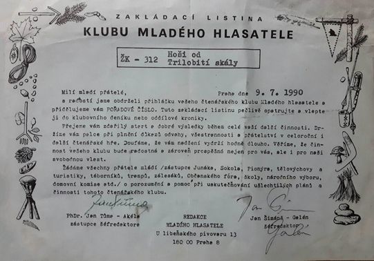 "Slunce vychází a zapadá, dnové vznikají a zanikají, tráva vyrůstá a uvadá; Vinnetou je však stále týž."... A stále týž – stále stejně skvělý – je i Mistr Zdeněk Burian, nad jehož originály ilustrací mayovek, verneovek a spousty dalšího dobrodružného čtení vydaného knižně a časopisecky od třicátých let do roku 1979 se mohou návštěvníci těšit v Galerii Smečky na výstavě Vlastní cestou. Byla otevřena 13. listopadu 2019 a potrvá symbolicky do poloviny února příštího roku, kdy si připomeneme Burianovo 115. výročí narození (11. 2. 1905 – 1. 7. 1981). Expozice připravená ze soukromé sbírky se soustředí převážně na dobrodružnou ilustraci, ale ukázkami je menšinově zastoupena i světově známá a uznávaná Burianova tvorba "pravěká". Příznivci foglarovek ocení přítomnost jednoho z velmi mála dochovaných (či veřejně přiznaných) kvašů z Hochů od Bobří řeky. více... Pozvánka na výstavu o III. obnově skautingu[ Autor: Bohoušek | vydáno: 14. 11. 2019 | přečteno 8875 | přidat komentář ]více... Stíny Stínadel[ Autor: Michal Beránek | vydáno: 9. 11. 2019 | přečteno 9902 | přidat komentář ] Kniha “Hlavní role: Praha” spisovatelky Magdaleny Wagnerové, která vyšla v nakladatelství Havran, nabízí atypické pohledy na Prahu. Jistě osloví všechny, kteří mají rádi hlavní město České republiky. Na 444 stránkách, doprovázených 414 černobílými fotografiemi, které nafotografovala sama autorka, jsou popisována různá místa české metropole. Pro mnohé, kteří procházejí kouty hlavního města, bude kniha určitě velikou inspirací. Díky ní člověk najednou vidí něco, čeho by si ani nevšiml. Jedna z kapitol s názvem Stíny Stínadel na více stránkách pojednává o spisovateli Jestřábovi – Jaroslavovi Foglarovi. Je vidět, že autorka se v tomto směru skutečně ponořila do desítek informací dostupných nejen na internetu. více... Foglarovský svět a sametová revoluce: ŽK - 312 Hoši od Trilobití skály – klub Mladého hlasatele a Duhové planety (1990-1991)[ Autor: Napsali jste nám | vydáno: 30. 10. 2019 | přečteno 10910 | komentáře: 3 | přidat komentář ] Byli jsme (a vlastně pořád ještě jsme) tři velcí kamarádi. Roman Š., Miroslav V. a Milan R. Po sametové revoluci (17.11.1989) jsme i my netrpělivě čekali na obnovu Junáka. Byli jsme totiž v té době s kamarády v tom nejlepším klukovském věku (12-14 let) a i když patříme mezi takzvané „Husákovy děti“ a na základní škole jsme museli (asi jako v té době drtivá většina dětí) nedobrovolně vstoupit do pionýra, tak i přesto jsme moc dobře znali dílo Jaroslava Foglara, neboť jeho komiksy s příběhy Rychlých šípů, neuvěřitelná dobrodružství Hochů od Bobří řeky a všechny ostatní příběhy z jeho báječných knih, nám nebyly naštěstí ani za minulého režimu utajeny. Pokud se dobře pamatuji, tak první schůzka obnoveného Junáka se konala v lednu 1990. Přihlásili jsme s kamarády do skautského oddílu Stopa (Kladno) a začali jsme žít tím vysněným junáckým životem. více... Foglarovský svět a sametová revoluce: Proč máme v dávné kronice kresbu kluka s rudým šátkem[ Autor: Napsali jste nám | vydáno: 30. 10. 2019 | přečteno 9749 | přidat komentář ] „Na pionýrské skupině pracovalo 16 oddílů, z toho 7 zájmových, 6 všeobecných, 3 oddíly jisker. Jisker bylo registrováno 52, pionýrů 315, což činí 87,6% organizovanosti. V tomto školním roce pionýři odpracovali 168 brigádnických hodin na úpravě klubovny a okolí, nasbírali 8.060 kg železa, 1.840 kg papíru, 367 kg kaštanů. Na fond solidarity odeslali 1.105 Kčs. Motivací celého pionýrského roku je heslo: „S dětmi celého světa za mír“. V letošním roce oslavili pionýři 40. výročí založení PO – 24. 4. 1989 se nevyučovalo, celé dopoledne probíhaly soutěže a zábavné hry, odpoledne bylo slavnostní skupinové shromáždění, na kterém byli vyznamenáni nebo odměněni nejlepší pionýři. Tento den končil táborovým ohněm za přítomnosti vojáků z patronátního VÚ. Akce k výročí probíhaly celý měsíc a jejich součástí byl i sběr odpadových surovin, diskotéka, střelecká soutěž, filmová a divadelní představení, sportovní soutěže. Ve spolupráci s MDPM Vracov byl uspořádán letní pionýrský tábor pro mladší pionýry.“ Kronika obce Milotice, 1989 Je to několik let zpátky, kdy se mne jeden mladší člen našeho oddílu zeptal, proč máme v té staré oddílové kronice kresbu kluka v kroji s červeným šátkem. Každá družina má přece svoji barvu šátku a červenou družinu v oddíle nemáme. více... Překvapující odhalení: člen klubu Rychlých šípů potkal ve Stínadlech děvče[ Autor: Ivo Fencl | vydáno: 28. 10. 2019 | přečteno 10894 | komentáře: 12 | přidat komentář ] Jak si vybavujeme, Jaroslav Foglar zrovna děvčatům ve svých knihách dvakrát nepřál a různě dámy upozaďoval, i když jednomu dívčímu klubu jeho hrdinové pomohli s klubovnou. A kráčejí onou krajinou snů rovněž Vlasta (s vlajkou), Podkova (opět s vlajkou) atd...Vzpomeneme si také asi na známou pasáž z Foglarovy Záhady hlavolamu, v níž je Červenáček ostrakizován jen za to, že se vypravil na vlastní pěst a za zády klubu, úplně sám na dobrodružnou výpravu do čtvrti zvané Stínadla. Mirek Dušín jej za to fakticky vyloučil, což bylo pro chlapce hotovou tragédií; nicméně vše dobře dopadne a smí opět chodit na výpravy s kamarády. Ne každý si přitom uvědomil, že Foglar taktně mlčí o tom, co tenkrát Červenáček zažil. V letu všech dalších a dalších událostí nepovažoval spisovatel za důležité toto doříct, ale našli se mnozí, kterým záhada onoho výletu vrtá hlavou dodnes. Jedním je brn